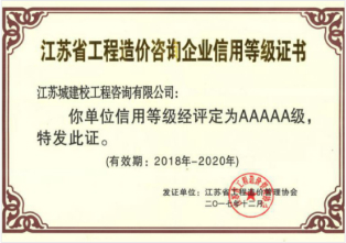 江苏省工程造价咨询企业信用等级证书