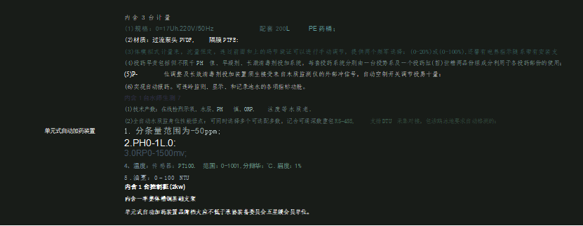 3、技术文件3.4.2石英砂过滤器,主要技术要求及参数如下:(5)“单元式自动过滤装置产品需具有CMA认证的第三方专业检测机构出具的“游泳池专用模块式单元自动过滤机组”产品合格检测报告”,此条删除;