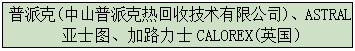 普派克(中山普派克热回收技术有限公司)、ASTRAL 亚士图、加路力士CALOREX(英国) |