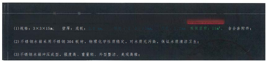 回复:砂缸材质调整为304不锈钢或玻纤砂缸,直径不得大于图纸尺寸,如采用不锈钢滤壳可中标后提供检测报告。
